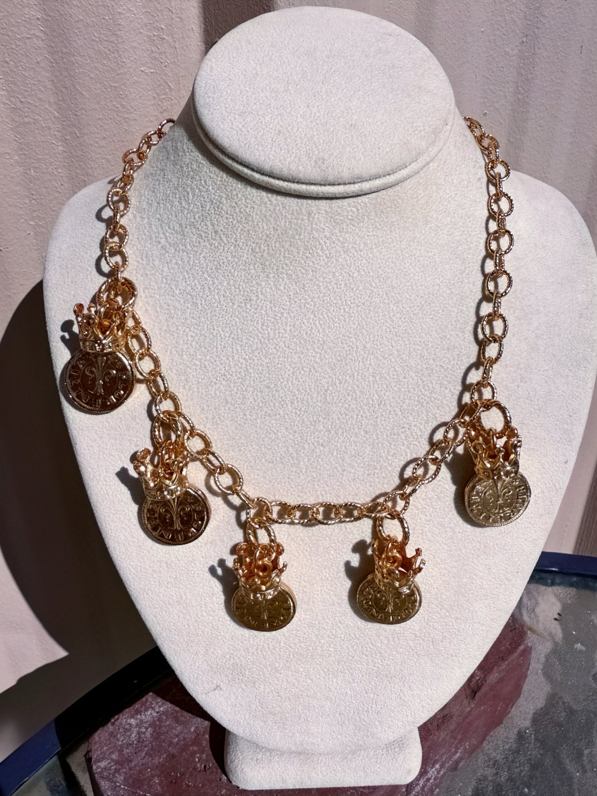 Fleur de Lis Coin and Crown Necklace