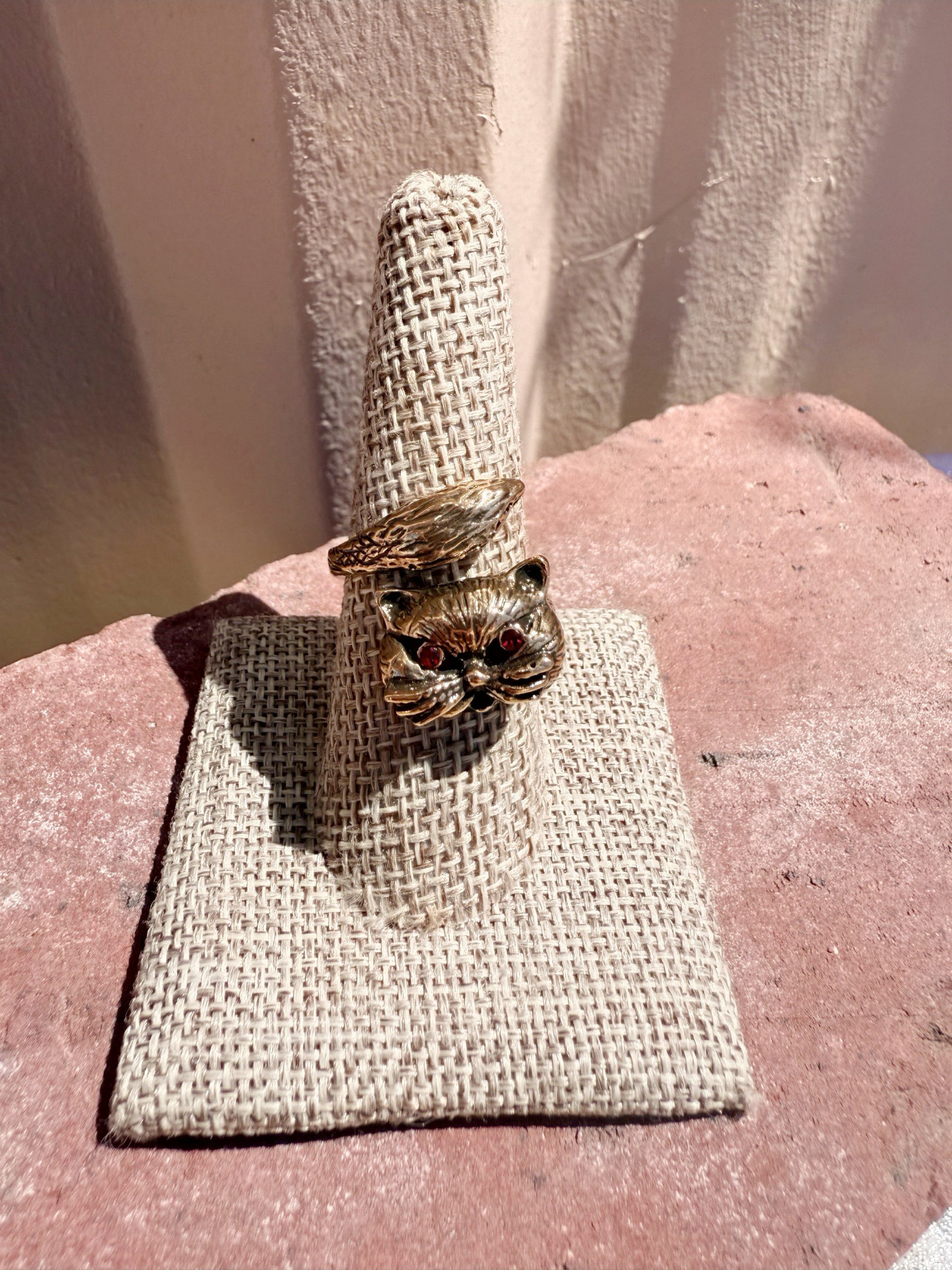 Elevate your style with our Italian Cat Ring. This ring features a sleek and adjustable design with vibrant red stones for the eyes of the cat motif. Perfect for any feline lover, this ring brings both elegance and personality to any outfit. Upgrade your jewelry collection with this must-have accessory.