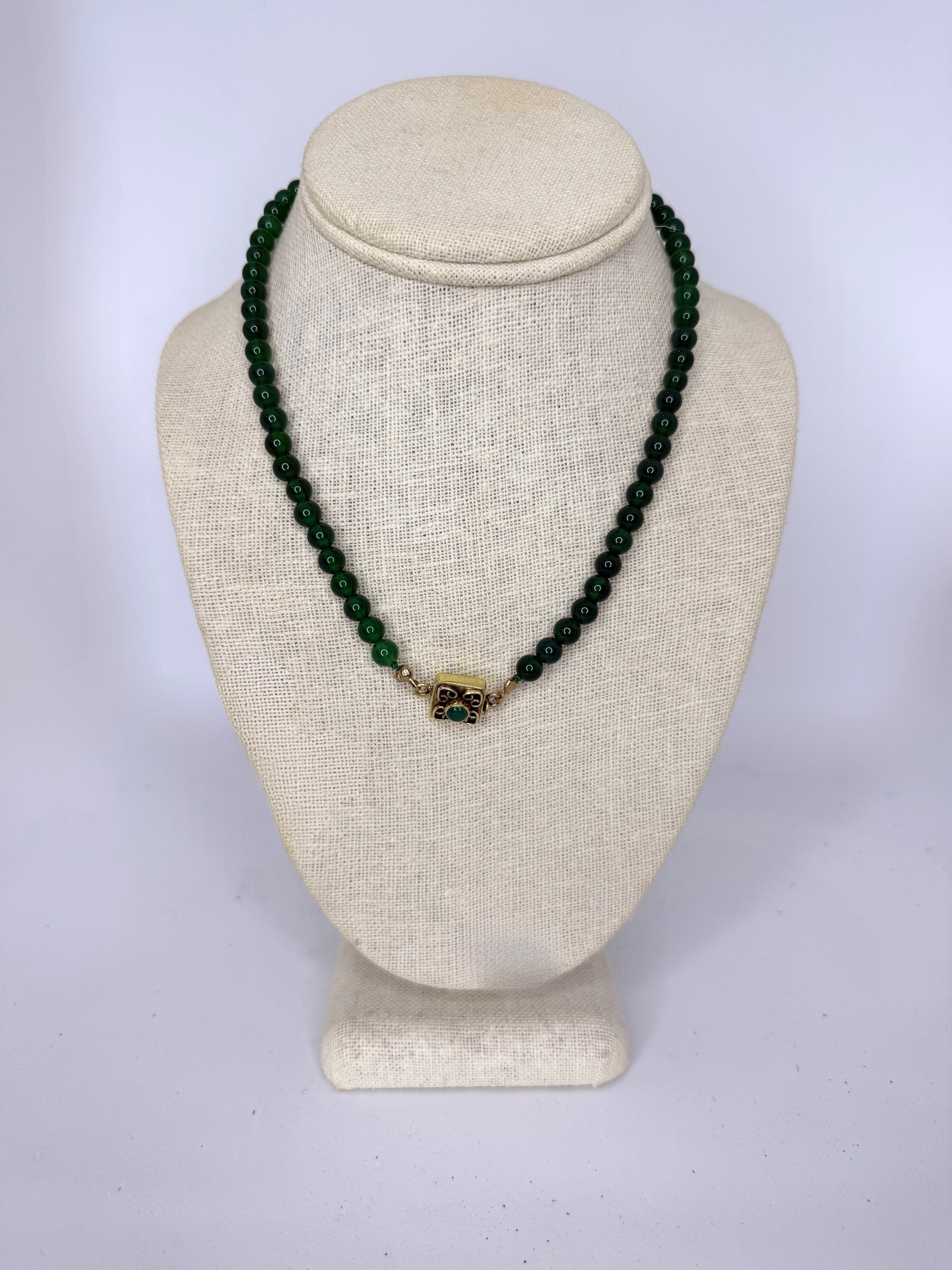 Elevate your style with this exquisite Italian Green Beaded Necklace. Handcrafted with luxurious green beads, this necklace radiates sophistication and elegance. Perfect for adding a touch of glamour to any outfit. Make a statement with this Italian beauty.