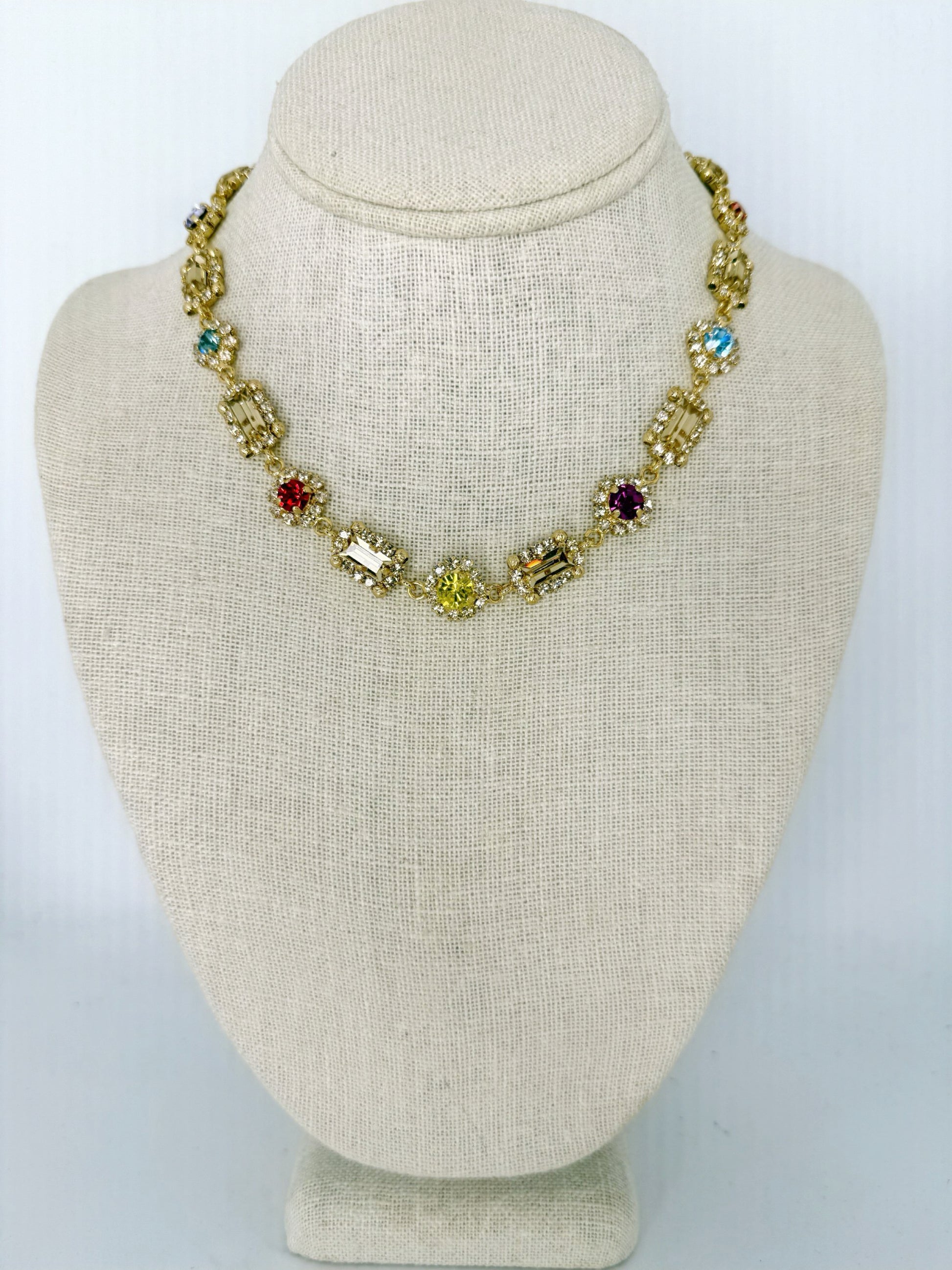 Indulge in opulence with the MonnaLuna Necklace. Made with Swarovski crystals, this necklace radiates radiance and luxury. The sterling silver, dipped in 14K gold, adds a touch of elegance to any outfit. Elevate your look with this exquisite piece of jewelry.