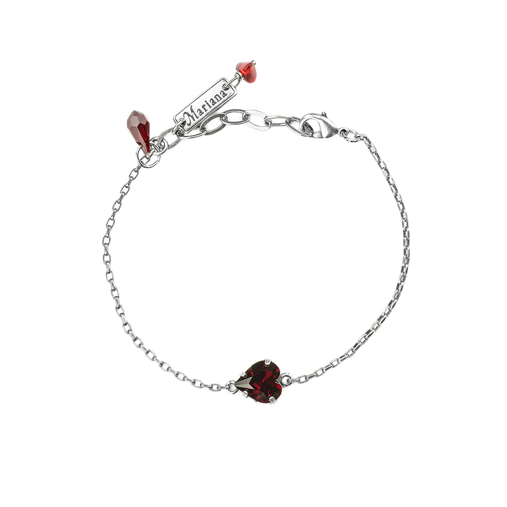 Small chain bracelet with centered crystal heart. Includes 2 charms: small unique, high-quality briolette and Mariana branded tag.