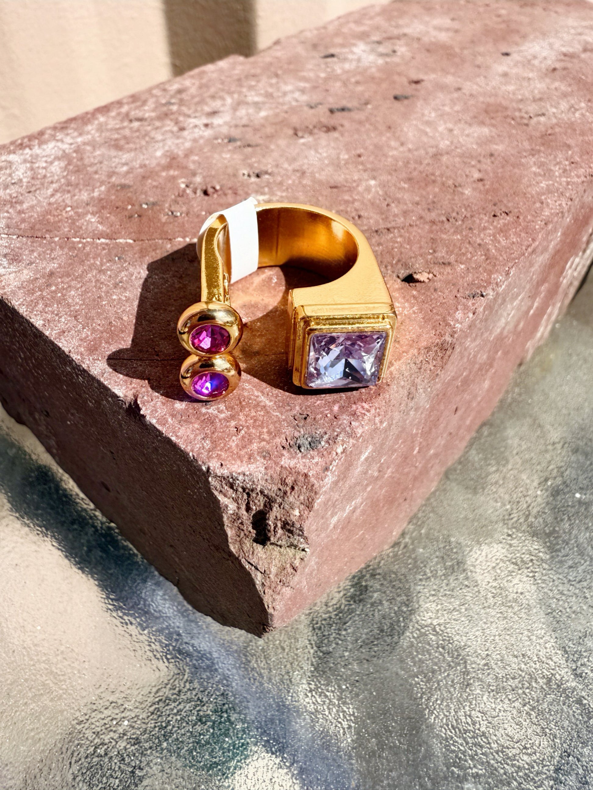 This elegant ring is available in a size 6 and features a stunning combination of pink and purple color.