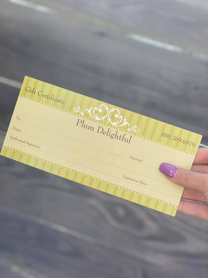 Treat someone you love with a gift card to Plum Delightful!
