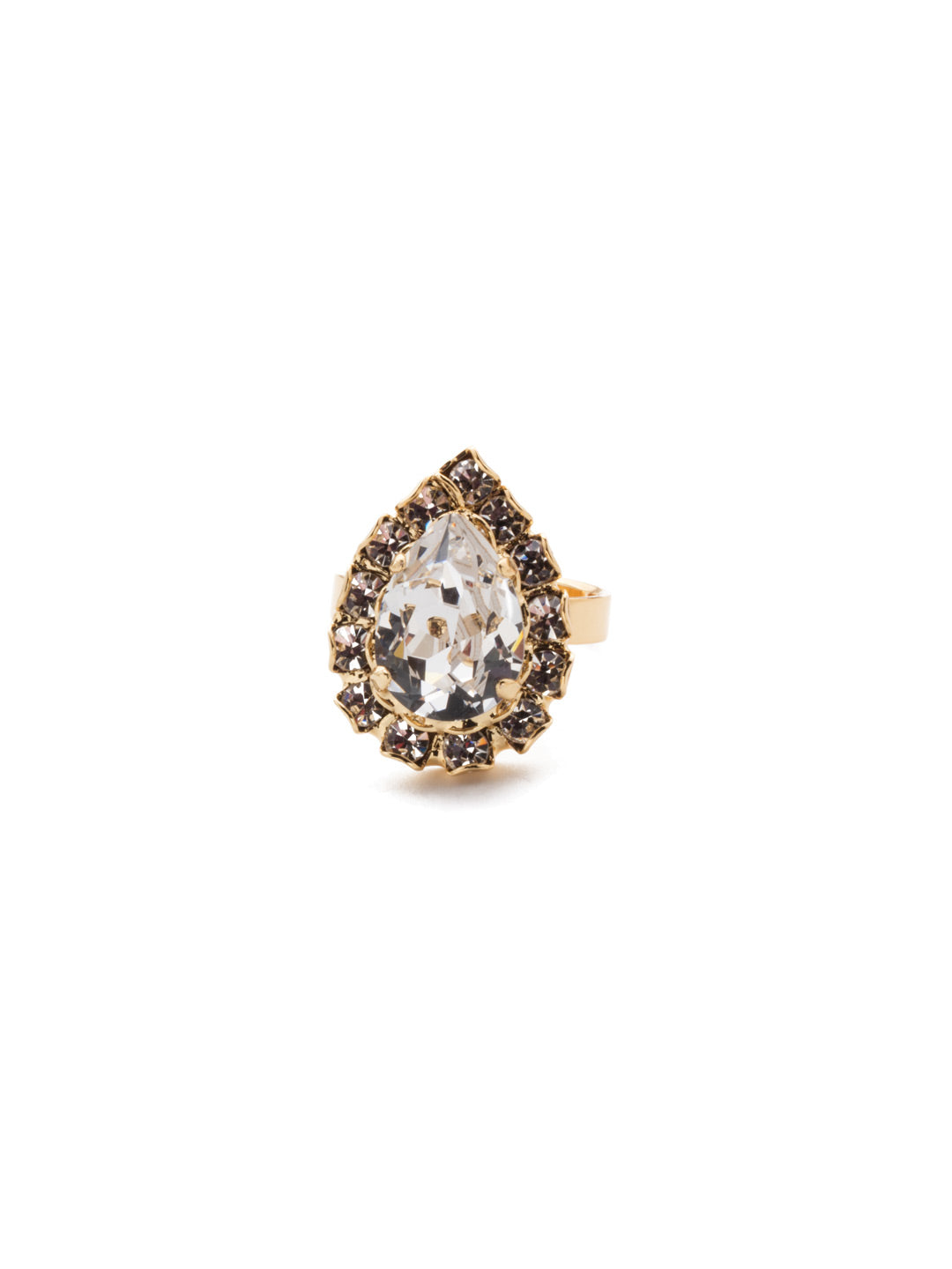 Don't be shy when it comes to blinging it on. Slip on the Peony Cocktail Ring and its stunning pear sparkler on any finger and shine. Adjustable to fit ring sizes 6-8.
