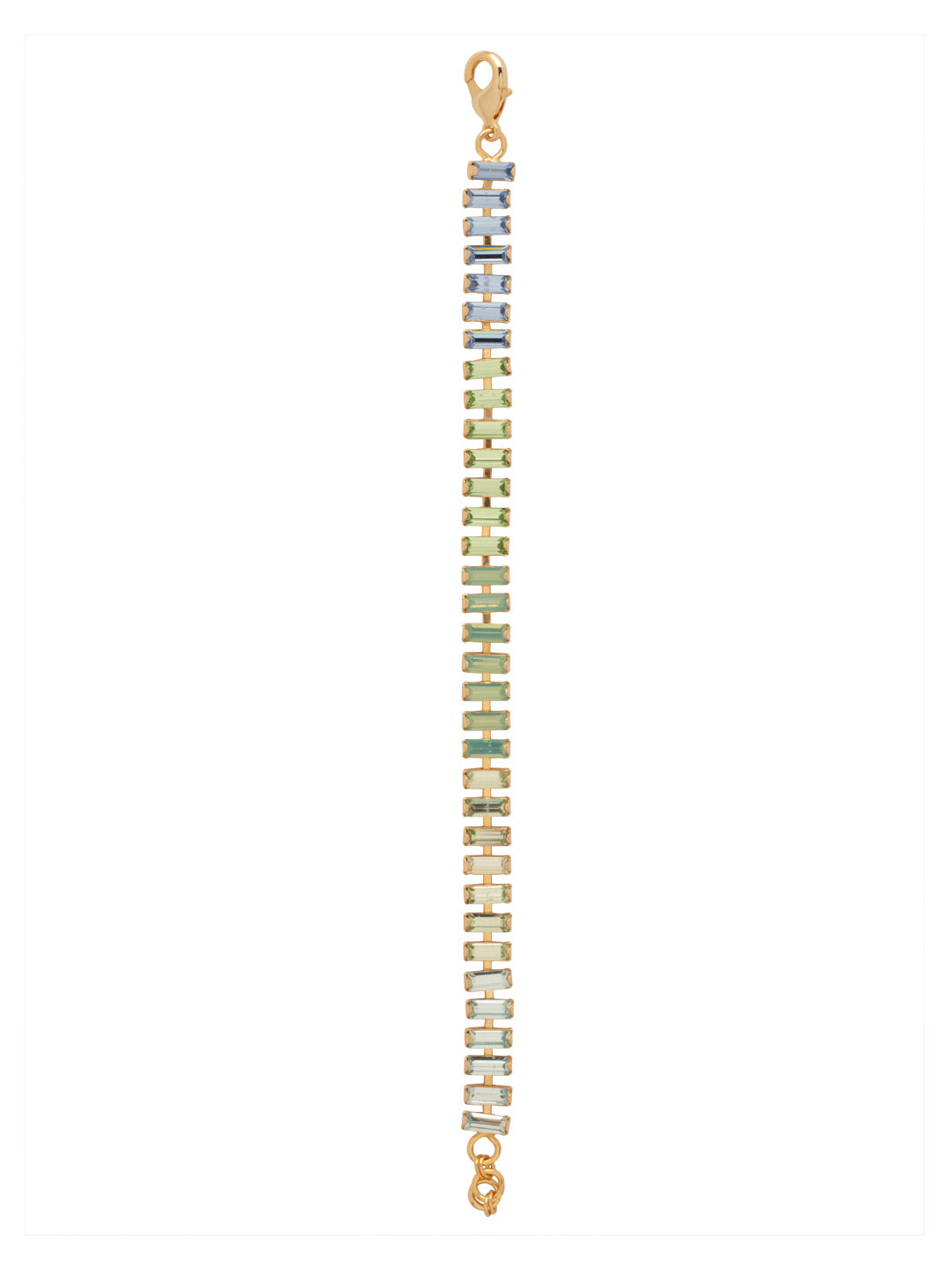 The Bianca Tennis Bracelet features a line of baby baguette-cut crystals with an adjustable chain, and secured with a lobster claw clasp.